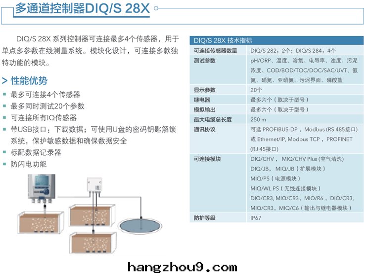 IQ Sensor Net 在(zài)線(xiàn)多(duō)參數監測系(xì)统是(shì)一(yī)種(zhǒng)數字(zì)式、模块(kuài)化(huà)設計(jì)、可(kě)扩展(zhǎn)的(de)水(shuǐ)質(zhì)監測系(xì)统,由(yóu)控制器和測量(liàng)電(diàn)极(jí)組成(chéng)。控制器類(lèi)型分(fēn)为(wèi)單點(diǎn)單參數測量(liàng)的(de)181控制器、單點(diǎn)多(duō)參數測量(liàng)的(de)28X控制器和多(duō)點(diǎn)网(wǎng)絡分(fēn)布(bù)式測量(liàng)的(de)2020控制器。
